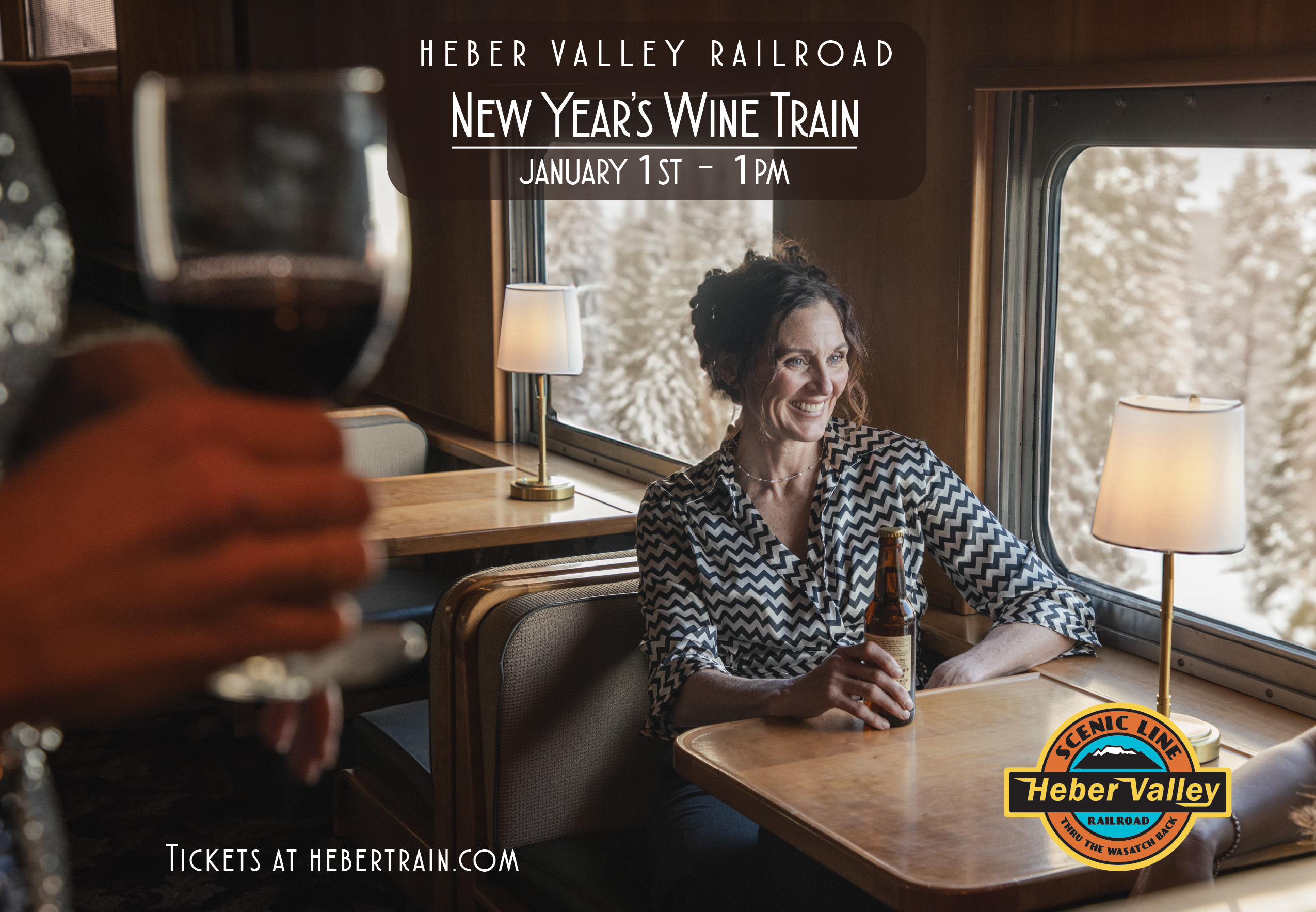 Start the new year in unique luxury on board the First Class New Year’s Wine Train. This 2 hour round trip ride has beautiful Wasatch Back views, an incredible 4 course wine tasting experience with light foods, and great entertainment. Best of all, you’ll enjoy it all while wandering through six unique and rare vintage streamlined lounge cars.